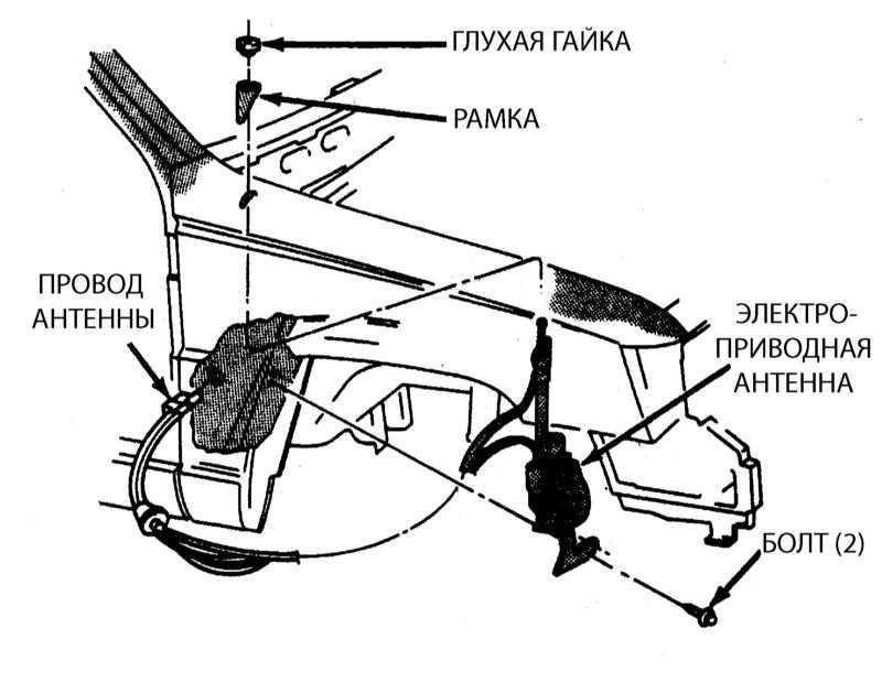 Снимите глухую (колпачковую) гайку и рамку. При электроприводной антенне отдайте крепежные болты. Извлеките антенну через арку колеса.