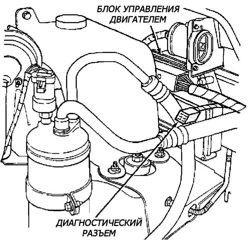 Расположение диагностического разъема под капотом двигательного отсека автомобиля.