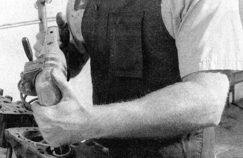 Проточка клапанных седел должна производиться в мастерской автосервиса при помощи специальной машинки (см. снимок) - центровка нового седла по отношению к направляющей втулке клапана производится с помощью отцентрованного на бородке и имеющего строго определенную форму точильного камня.