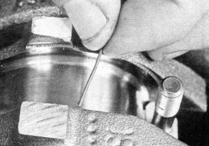 Спецификаций, то, возможно, установлены вкладыши не того размера (что означает необходимость их замены). Перед тем как прийти к окончательному заключению о необходимости замены вкладышей, удостоверьтесь, что под их спинками в процессе измерения зазора не находились грязь или масло. Кроме того, повторите измерение диаметра шейки. Если расплющенная калиброванная проволока шире с одной из сторон шейки, то последняя имеет конусность и вал нуждается в проточке.