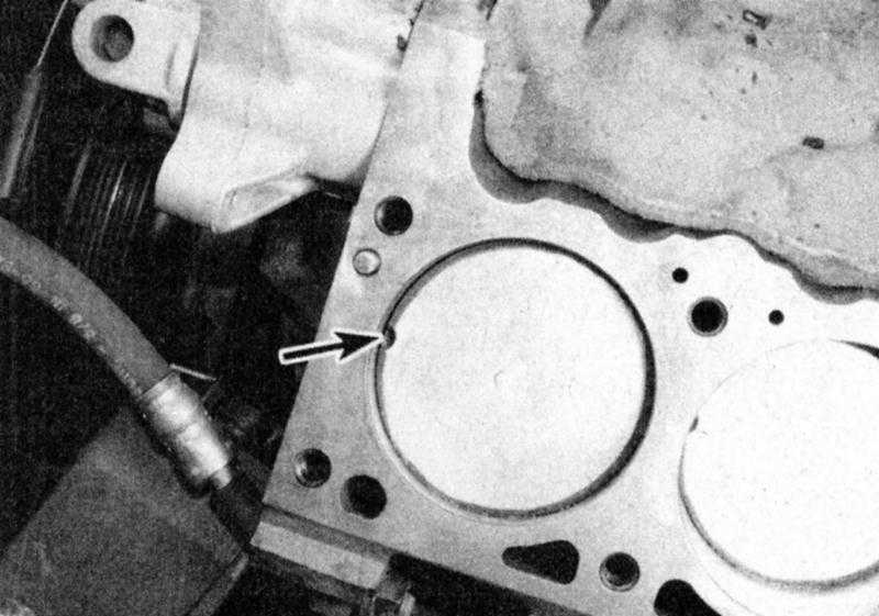 Углубление на днище поршня должно быть обращено вперед по двигателю.